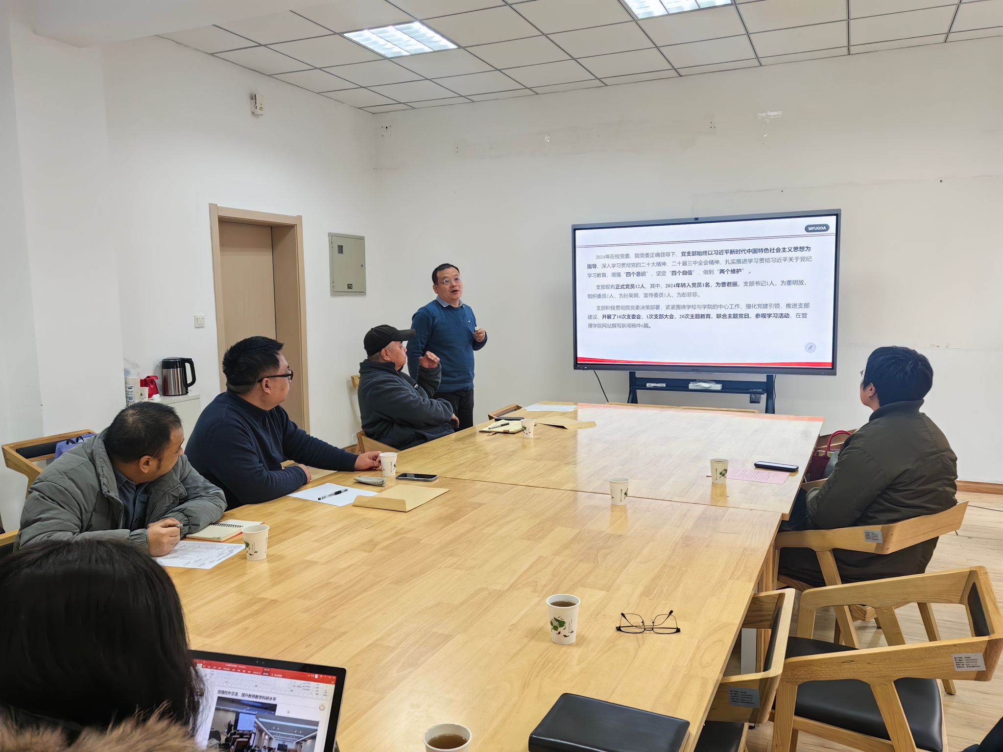周琳在总结讲话中指出,2024年各位支部书记认真贯彻落实上级党委各项决策部署,认真抓党建促发展,展现了良好的精神风貌和强烈的责任担当,工作取得了一定成绩,但仍然存在诸多问题,对于2025年党建工作她提出五点要求:一是全面围绕巡察提出的问题,采取切实措施抓好落实整改;二是严肃党内政治生活,认真落实好“三会一课”、组织生活、民主评议党员等制度;三是从实际出发,不断丰富主题党日活动,不断推动党内政治生活规范化;四是优化机构设置,探索建立师生联合党支部,推动党建与教学、科研等深度融合相互促进。五是高度重视意识形态工作,加强各类阵地管理和网络舆情监测研判,推进学生日常教育管理和心理健康状况排查。