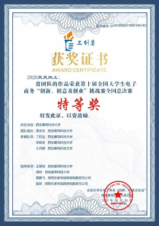 工商管理专业将双创教育融入人才培养全过程,取得了较好的成效。学生荣获全国大学生电子商务“创新、创意及创业”挑战赛国赛特等奖1项、二等奖3项,三等奖4项,省赛特等奖1项,,省级一等奖4项、二等奖5项、三等奖12项;“挑战杯”中国大学生创业计划竞赛国赛金奖2项,中国国际“互联网+”大学生创新创业大赛国赛铜奖1项,省级金奖1项,银奖5项;全国管理决策模拟大赛国赛特等奖1项,一等奖6项,二等奖8项。其他各类省级以上创新创业竞赛获奖共计150余项。
