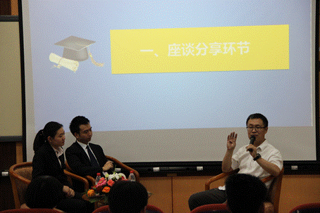 在座谈环节中,主持人根据微信平台上收集的问题与李立校友进行了解疑答惑,并讲述了自身房地产从业经历。李立校友还与大家分享了“三业”择业观,三业即行业、企业、职业,首先应根据自身兴趣及能力选择适合自身发展的行业,然后基于对行业中的全盘了解确定竞聘企业,最终依照所在企业的具体情况选定从事的具体职业,通过“三业”的考量进行科学、合理的进行就业选择,为职业发展打下坚定的基础。
