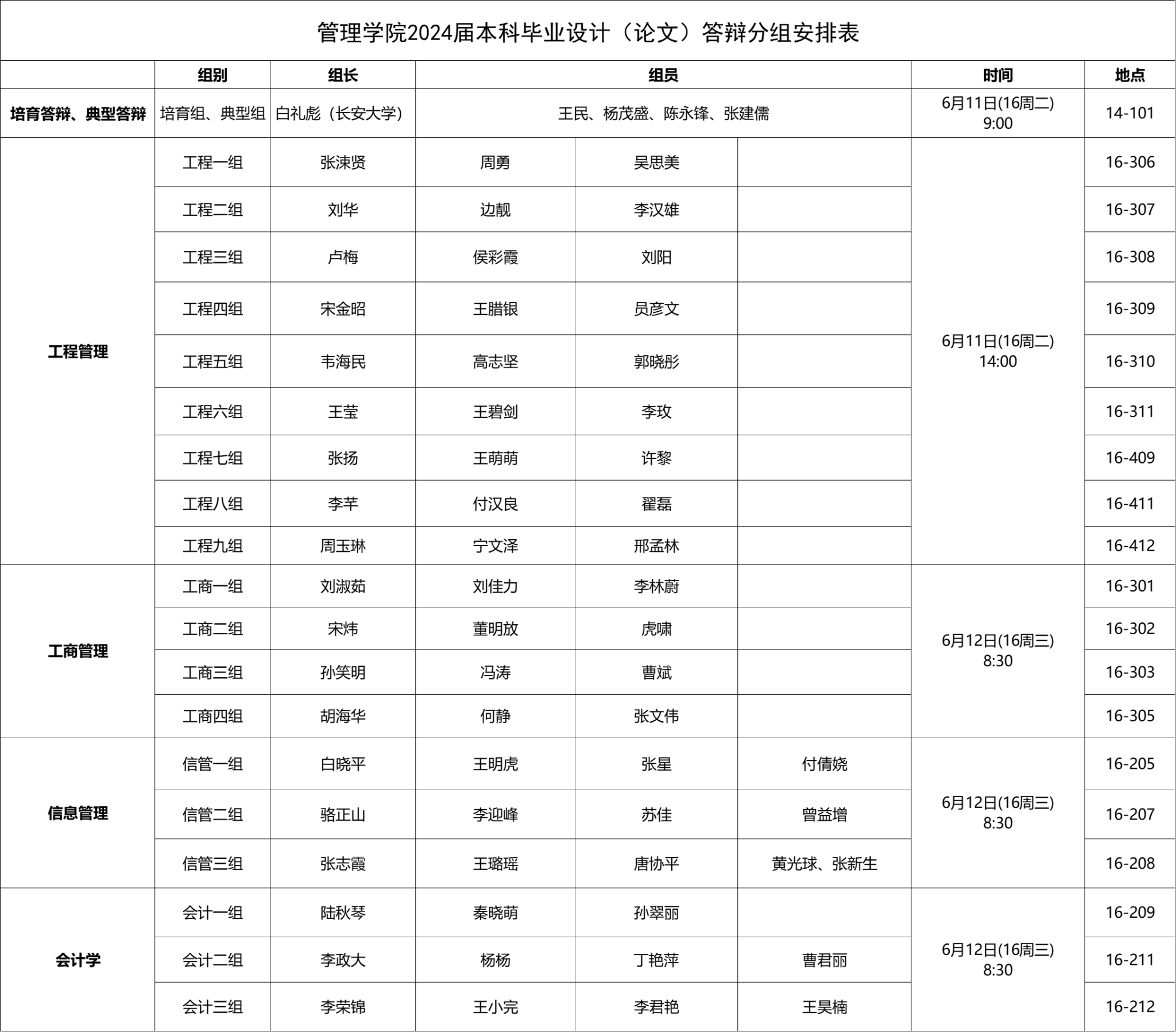 雷竞技RAYBET2024届本科毕业设计(论文)答辩分组安排