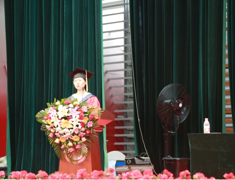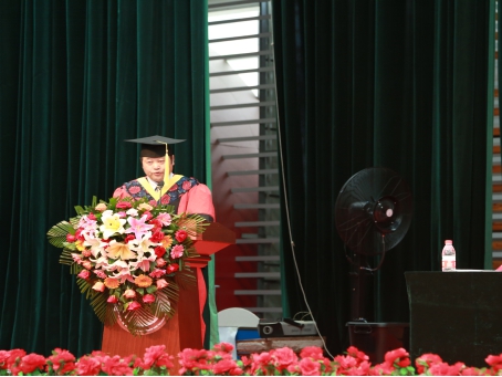 教师代表成喜玲老师代表全体教师对2016届全体本科生的毕业表示了衷心的祝贺,同时教导大家一要常怀感恩之心,要感谢那些帮助过自己的人,要感恩父母、师长对自己的指导和关心。二是毕业后所面临的社会是一个更大的舞台,有很多学校里未曾预见的挑战,但同时也是展示自己才华的机会,应做好准备,把握机会。三应脚踏实地、勤奋做事,找到属于自己的人生事业和理想追求。
