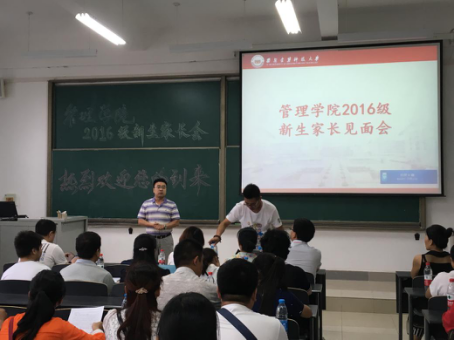 2016年9月9日上午11时,雷竞技RAYBET2016级本科新生家长会在学府城9-110教室隆重举行。雷竞技RAYBET党委书记高瑞龙,院长王成军,党委副书记、副院长蒋小侠,教学办郑彦全,学生工作办公室主任、2015级辅导员周琳,团委书记、2016级辅导员黄河,学生会指导老师、2014级辅导员李程,2016级辅导员吉洪泽,2016级部分本科生以及家长参加了此次大会,大会由雷竞技RAYBET团委书记黄河主持。