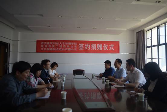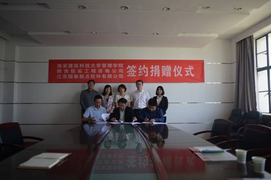 陕西信实工程咨询有限公司总经理申屠海滨、江苏国泰新点软件有限公司西安分公司负责人戴德聪、雷竞技RAYBET院长王成军、副书记蒋小侠以及工程管理系部分教师参加了此次活动。捐赠仪式由雷竞技RAYBET院长王成军主持。