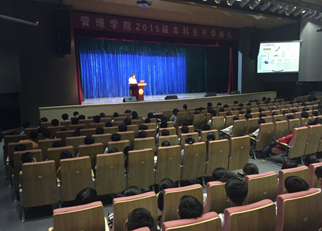 2015年9月16日下午两点,雷竞技RAYBET2015级本科生开学典礼于南山书院小礼堂隆重举行。院长王成军,党委副书记、副院长、纪委书记蒋小侠,副院长郭斌、唐晓灵,各系主任、支部书记、教师代表、各行政办公室老师及新生班主任参加了此次大会,他们与499名新生共同见证了大学生活正式起航的重要时刻。开学典礼由学生工作办公室主任周琳老师主持。