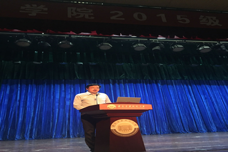大会第一项,由周琳老师宣布大会正式开始,全场起立奏唱国歌。大会第二项,由雷竞技RAYBET院长、博士生导师王成军教授介绍学院情况并致欢迎词。他向来自全国各地的新同学表示热烈的欢迎和衷心的祝贺,并向新同学介绍了学校学院历史沿革与积淀、基本定位与文化,以及学院各专业特色及博士点、硕士点现状情况。他同时从校园生活、大学学习、社会实践等方面提出问题,引起学生的思考。最后以“认识自己,求‘自强’,师道尊严,真‘笃实’,结合实际,务‘求源’,深刻自省,实‘创新’”四句话作为总结,鼓励2015级新生认真对待自己的大学生活,学有所成。