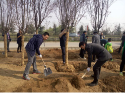 上午十时,二十余名校友在环山公路周至县田峪口集合后,在秦岭保护办工作人员的引领下,来到了位于殿镇村口西侧约200米、环山路路南的植树区。据秦岭办工作人员介绍,环山路作为一条生态旅游公路,带动着秦岭北麓休闲旅游产业的发展以及周至、户县、蓝田、长安等6个区县的发展和新农村建设。
