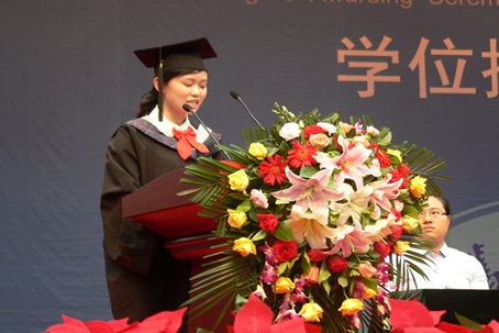 教师代表公共管理系李从容老师为毕业生们送上真挚的祝福,勉励同学们踏实走好人生的每一步;工程管理1103班潘墨笛同学代表毕业生对学校、学院以及各位老师们长期以来的辛勤付出表示感谢,并祝愿学院明天更好。