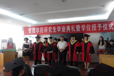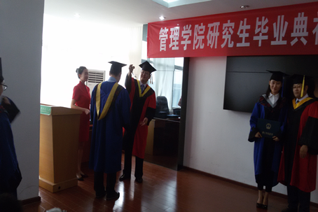 典礼结束后,副院长郭斌为2015届研究生毕业生扶正流苏并授予学位。一个个身穿学位服的毕业生从郭斌副院长手中接过学位证书并与王成军院长合影留念。从他们的表情中既可以看出对自己未来前途的信心与向往,又可以看出对即将离开母校的不舍与眷恋。