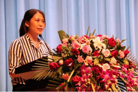 会计系老师陆秋琴作为学院教师代表发言,她结合自己的大学与工作经历,与同学们分享自己的经验与体会:第一,树立新的目标;第二,学会自我管理,学会管理时间,不虚度光阴;第三,学会理解宽容他人,学会感恩,学会担当责任。最后,陆老师希望同学们好好珍惜大学生活,用积极进取为青春抹上奋斗的底色。