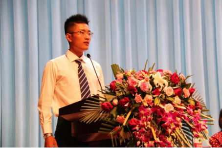 管科1805班刘瀚楷同学代表全体新生发言,他表示大学是梦想之站,要拿出拼搏的干劲,博得属于自己的精彩,树立正确观念,以学为本,不辜负青春时光。