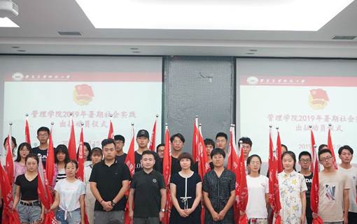 随后,各位老师为实践团队授旗,实践团队代表胡月同学表态发言,她表示,社会实践是青年学子了解国情民情的重要途径,希望所有同学敢于吃苦、不畏困难、乐于奉献,展现建大学子的优良品质。