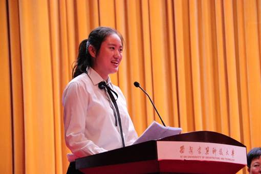 何雨珊同学代表全体新生发言,她提出三点想法与大家共勉。第一,树立远大的理想,拓宽自己的视野和思维,做好全面的规划。第二,养成良好的作风和生活习惯,严于律己,做品学兼优的建大学子。第三,尊敬师长,团结同学。与一路上的引导者、同路人,一起团结向上,奋发有为。