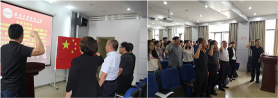 9月11日下午,雷竞技RAYBET组织全体教师举行了宣誓活动。在青年教师标兵张新生教授的带领下,学院教师全体肃立,面对鲜艳的五星红旗,紧握右拳,面对国旗庄严宣誓:我志愿做一名光荣的人民教师,忠于党的教育事业,贯彻党的教育方针,履行教师的神圣职责,做有理想信念、有道德情操、有扎实知识、有仁爱之心的好教师,爱国守法、忠于职守,教书育人、关爱学生,严谨治学、勇于创新,为人师表、甘于奉献,为学生德智体美劳全面发展奉献智慧与力量,为党和人民的教育事业而努力奋斗!老师们纷纷表示,在今后的工作中不忘作为一名人民教师的初心,牢记自己肩负的重大使命,用实际行动践行自己的铮铮誓言,努力做一名学生爱戴、社会满意的“四有”好老师。