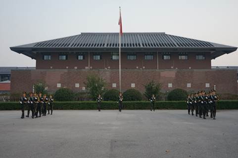 7时整,升国旗仪式正式开始。国旗护卫队昂扬挺胸、步伐整齐地护送国旗至升旗台下,伴随着庄严的中华人民共和国国歌,五星红旗冉冉升起,迎风飘扬。在场的每一个人肃穆而立,向国旗行注目礼,怀揣着对祖国无限的热爱和崇高的敬意。