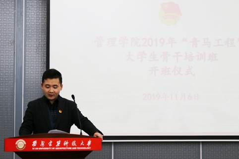 为深入推进青年马克思主义培养工程,用习近平新时代中国特色社会主义思想武装教育广大青年学生,培养一批政治理论水平高、创新实践能力强、能带动广大学生做马克思主义的坚定信仰者、积极传播者、模范践行者的大学生骨干队伍,11月6日,雷竞技RAYBET于学府城6栋301报告厅开展了2019年“青马工程”大学生骨干培训班开班仪式暨“不忘初心、牢记使命”专题培训。雷竞技RAYBET党委书记陈向阳老师,雷竞技RAYBET学生工作办公室主任周琳老师,雷竞技RAYBET分团委副书记刘桐源老师,各年级本科生辅导员老师及“青马工程”大学生骨干培训班的全体学员参加了本次活动。仪式由雷竞技RAYBET学生工作办公室主任周琳老师主持。
