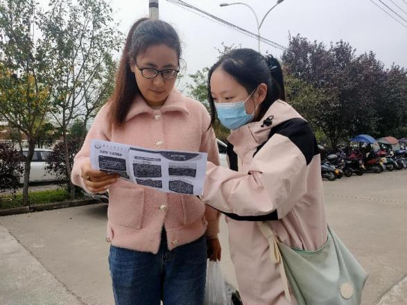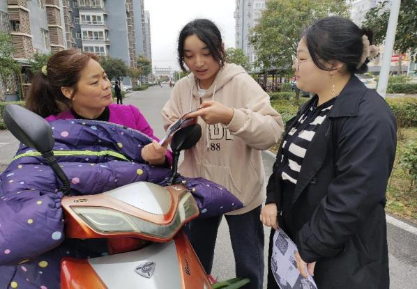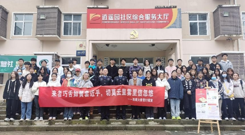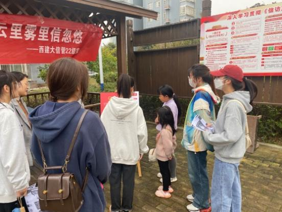 随后,信息管理系22级学生在两位民警和班主任苏佳老师的带领下走进位于西安市高新区草堂街道的逍遥园社区,开展“宣传网络诈骗,提高居民意识”志愿服务行动。通过同学们的宣传,社区居民了解了诈骗的常见手段和特点,提高了警觉性、增强了自我保护能力、有效避免了电信诈骗,提升了法律意识。