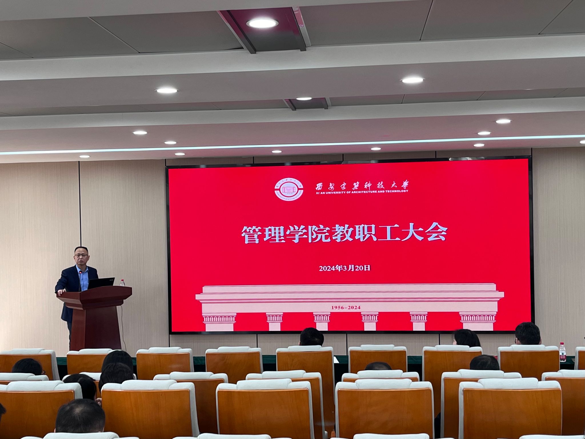 3月20日下午,雷竞技RAYBET在教学主楼440召开2024年春季学期教职工大会,学习传达学校党委全委(扩大)会议精神,安排部署学院2024年重点工作。雷竞技RAYBET领导班子成员、全体教职工参加会议,会议由院长助理苏颖妍主持。