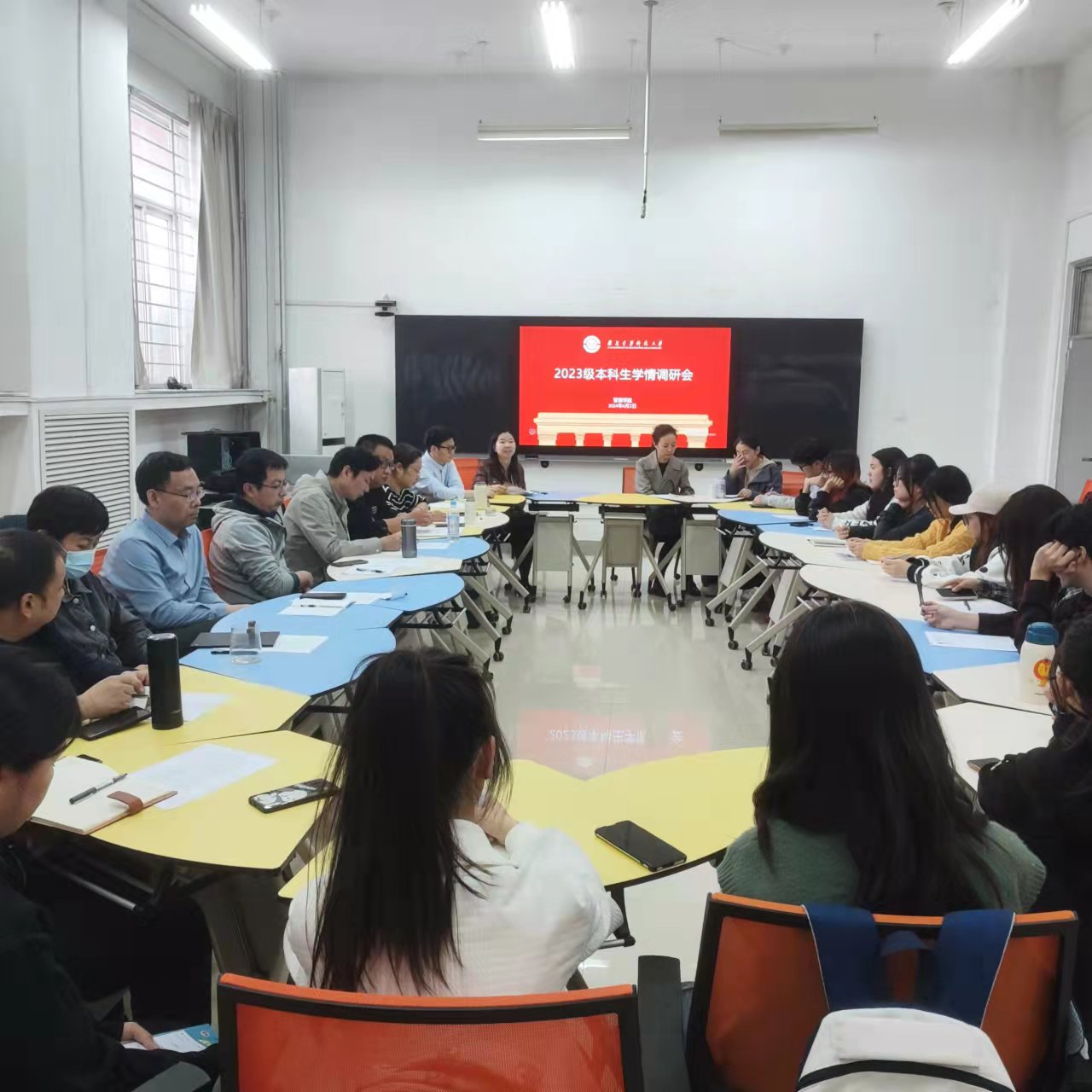 为学习贯彻习近平新时代中国特色社会主义思想主题教育、大兴调查研究之风,由教学办公室、学生工作办公室共同发起的雷竞技RAYBET2023级本科生学情调研会于4月2日中午在草堂校区1-502室进行。副院长张新生、副处级辅导员周琳,工程管理、工商管理、会计学、信息管理等系主任、副主任,教学办、学工办、实验室负责人及2023级辅导员等出席会议。会议由教学办主任余颖燕主持。