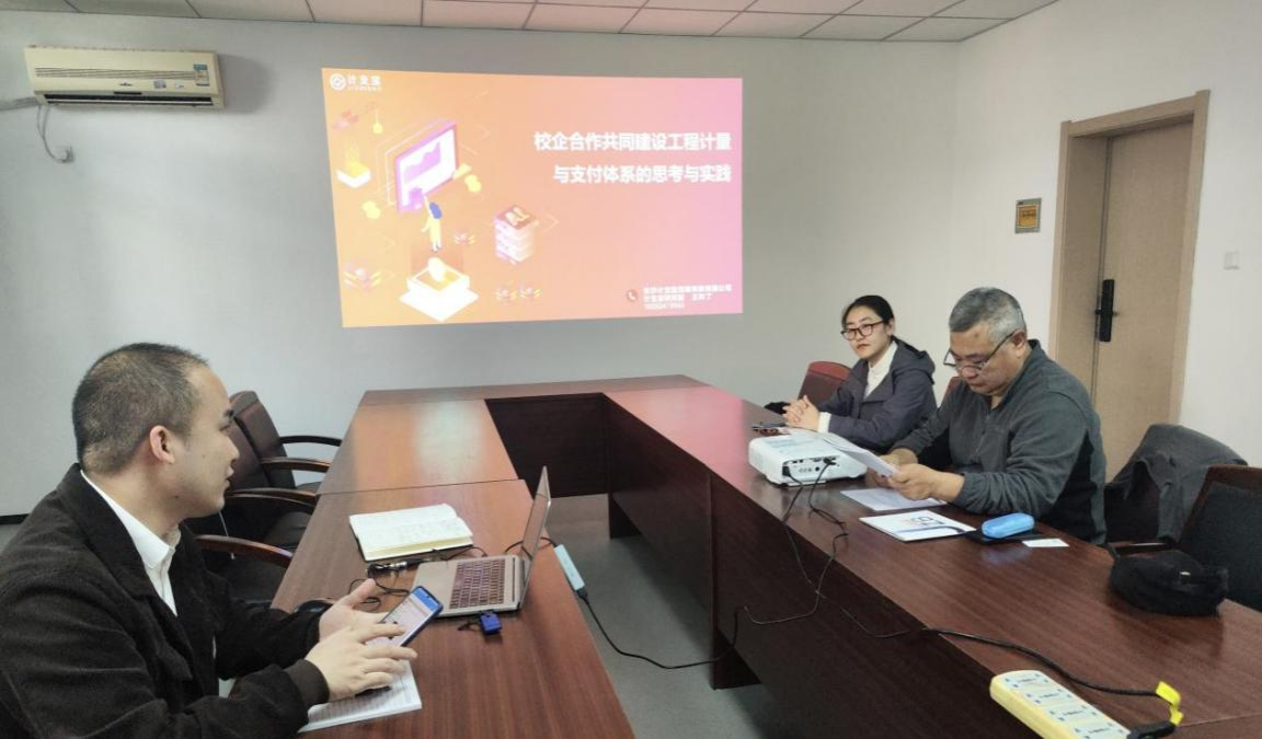 会议开始,高志坚对计支宝公司的到访表示欢迎,并介绍了我院工程管理专业的历史沿革和建设现状。计支宝谭远洋介绍了公司的发展历程,阐述了计支宝在新时代背景下培养高质量合约人才的理论思考及实践探索,其使命是“定义与变革计量与支付规则,让天下没有难做的工程”,他还演示了计支宝教学版平台,工程数字化计量与支付软件的教学版,可以使学生在课堂上实操实践项目的计量与支付流程。随后,计支宝王科丁做了《校企合作共同建设工程计量与支付体系的思考与实践》的主题分享。