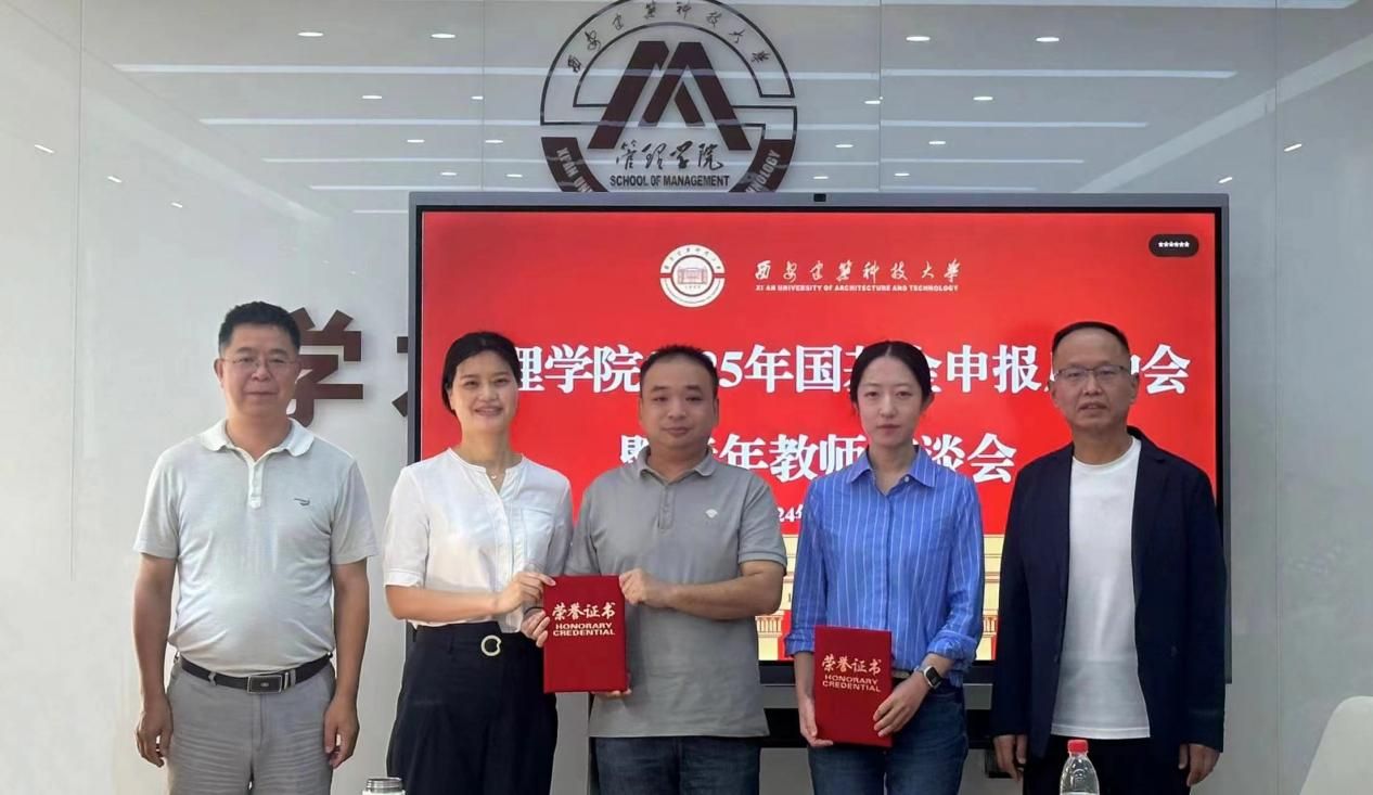 李玲燕总结了2024年学院国家基金申报与获准情况,并就2025年申报工作进行了安排部署。随后刘艳峰、兰峰为我院2024年度科技工作先进个人李玲燕、胡海华、李林蔚三位教师颁发了荣誉证书。胡海华、李林蔚还结合自己获准基金经历分别从选题思路、申请书撰写、评审注意事项等方面进行了经验分享。