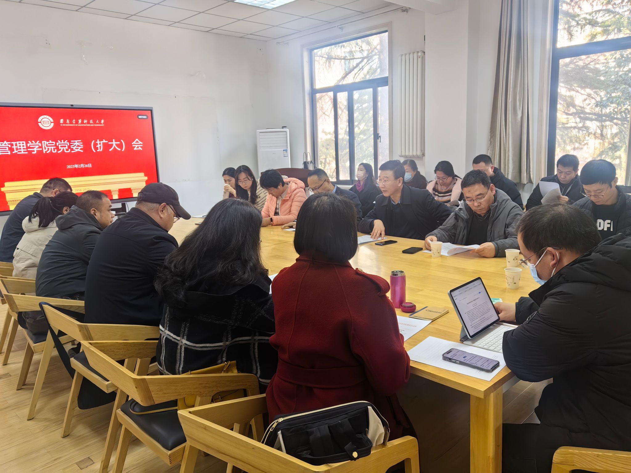 2月26日下午,雷竞技RAYBET在西楼210召开党委(扩大)会,会议传达学习了学校党委全委(扩大)会议精神,并对2025年学院全面深化改革工作进行了安排部署。学院党政领导班子、党委委员、纪委委员、各系党支部书记、系主任和机关各科室负责人参加会议,会议由学院党委书记杨建平主持。