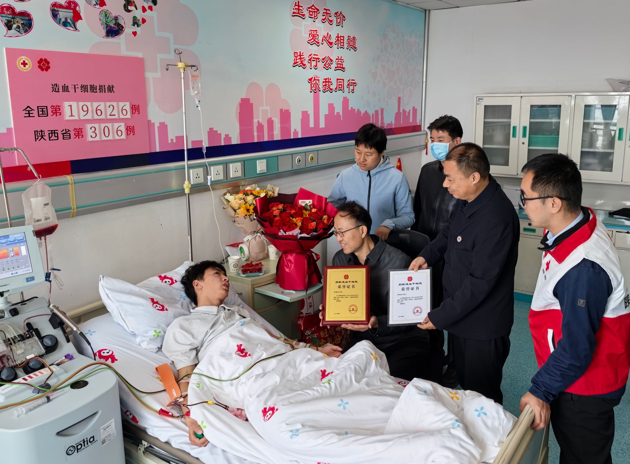 西安市红十字会党组书记刘建民、秘书长夏雁,陕西省造血干细胞资料库管理中心主任何洁,我校校医院院长刘卫东,学生处副处长陈政,雷竞技RAYBET副书记、副院长周琳以及学生辅导员、同学前往医院看望慰问,对甘俊杰乐于助人、无私奉献的精神表示充分的肯定和由衷的敬意。