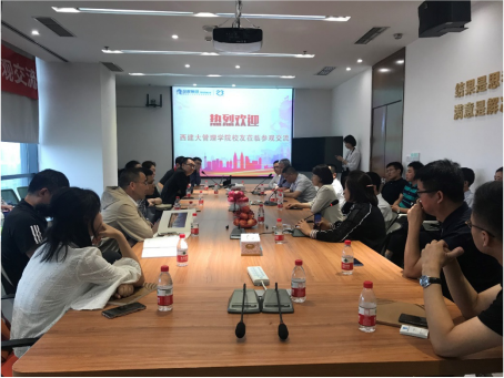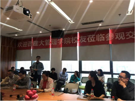首先,校友们一行在管理科学2000级校友、金辉集团总裁助理兼西北区域总裁周长亮的陪同下参观了金辉集团西北区域公司,并与金辉集团西北区域公司各条线高管进行座谈。