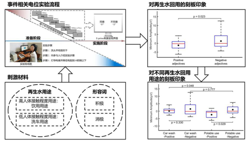 文章题为《公众对于不同人体接触程度再生水回用用途的刻板印象:来自事件相关电位实验的证据(Public stereotypes of recycled water end uses with different human contact: Evidence from event-related potential (ERP))》,发表与《Resources, Conservation & Recycling》杂志,影响因子8.086。本文通过事件相关电位实验,验证了公众对于不同人体接触程度再生水回用用途刻板印象之间的区别(原文图摘要如图1)。