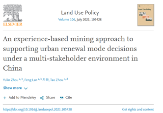 近日,我院周玉琳博士、兰峰教授等在城乡发展与土地利用(Urban and Rural Development, Land Use)领域国际权威SSCI期刊《Land Use Policy》发表题为“An experience-based mining approach to supporting urban renewal mode decisions under a multi-stakeholder environment in China”的研究成果。《Land Use Policy》是爱思唯尔(Elsevier)旗下城乡发展与土地利用研究领域的国际权威学术期刊,刊载的论文涉及城市与乡村土地利用的社会、经济、政治、法律、自然和规划管理等诸多方面。