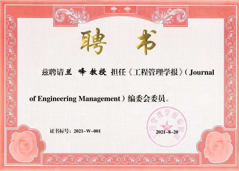 兰峰教授的此次任职,成为该杂志创刊以来,我校担任该刊编委会委员的第二位学者,将对我院“双一流建设”及提升工程管理学科在国际国内学术界的知名度、影响力起到积极的作用。