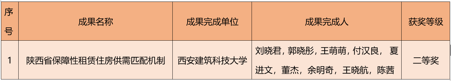 近日,陕西省人民政府发布《陕西省人民政府关于2022年度陕西省科学技术奖励的决定》,本次共授予260项科研成果和8名科研人员科学技术奖励。我院刘晓君教授团队作为第一完成单位主持的科研成果“陕西省保障性租赁住房供需匹配机制”,荣获陕西省科学技术进步二等奖。主要完成人:刘晓君 郭晓彤 王萌萌 付汉良 夏进文 董杰 余明奇 王晓航 陈茜。