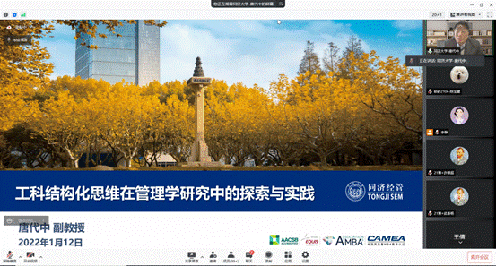 2022年1月12日下午,同济大学唐代中副教授为雷竞技RAYBET师生作了题为《工科结构化思维在管理学研究中的探索与实践》的报告。报告由兰峰教授主持,雷竞技RAYBET约300名师生线上聆听了本次报告。