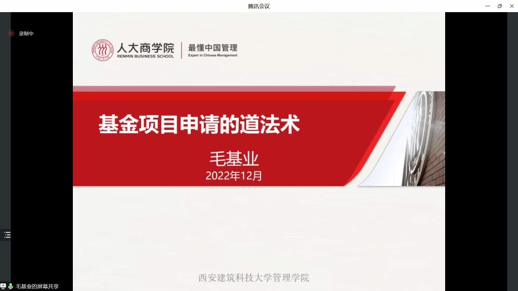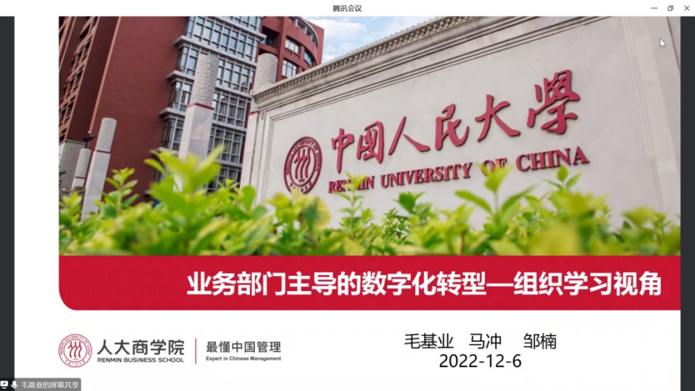 为做好2023年度国家科学基金申报工作,提高我院师生科研水平。2022年12月6日,我院特邀中国人民大学商学院毛基业教授为我院师生作了题为“业务部门主导的数字化转型——组织学习视角”和“基金项目申请的道法术”的线上报告。会议由院长兰峰教授主持,我院约200名师生参加。