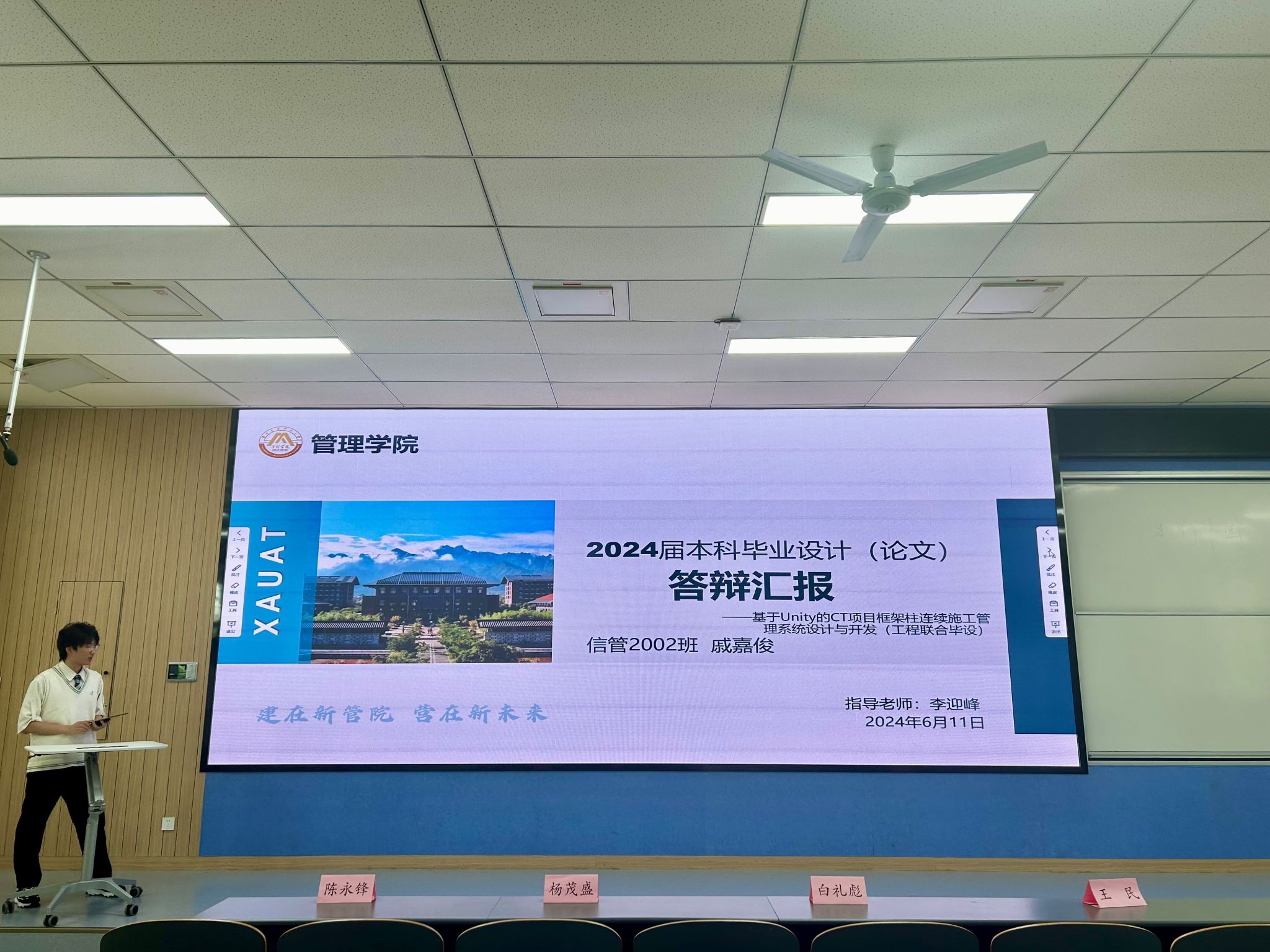 6月12日举行2024届本科生毕业设计(论文)普通组毕业答辩,主要分为总结汇报和问题答辩两个环节。学生逐一上台进行汇报展示,以PPT汇报形式向答辩老师陈述各自的课题来源、研究目的、研究意义、研究方法、研究结果等方面内容。答辩老师认真聆听,针对论文内容和同学们所做的工作全面、细致的提问和点评,帮助同学们进一步优化论文质量。