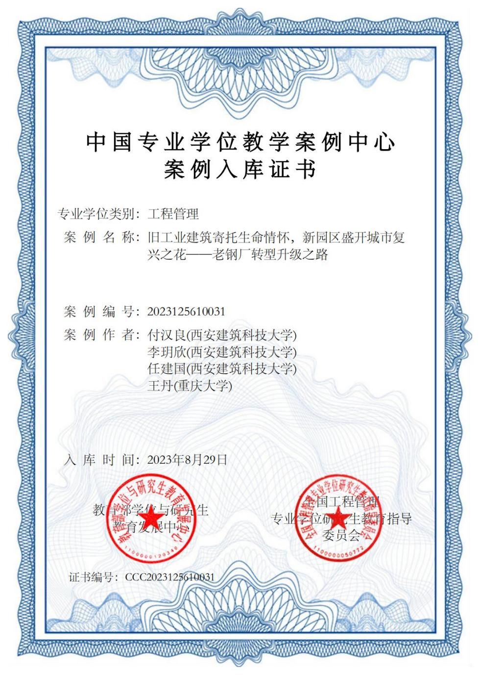 我院付汉良老师团队结合我校对于老钢厂改造的真实项目撰写的教学案例“旧工业建筑寄托生命情怀,新园区盛开城市复兴之花——老钢厂转型升级之路”入选中国专业学位案例中心MEM案例库。