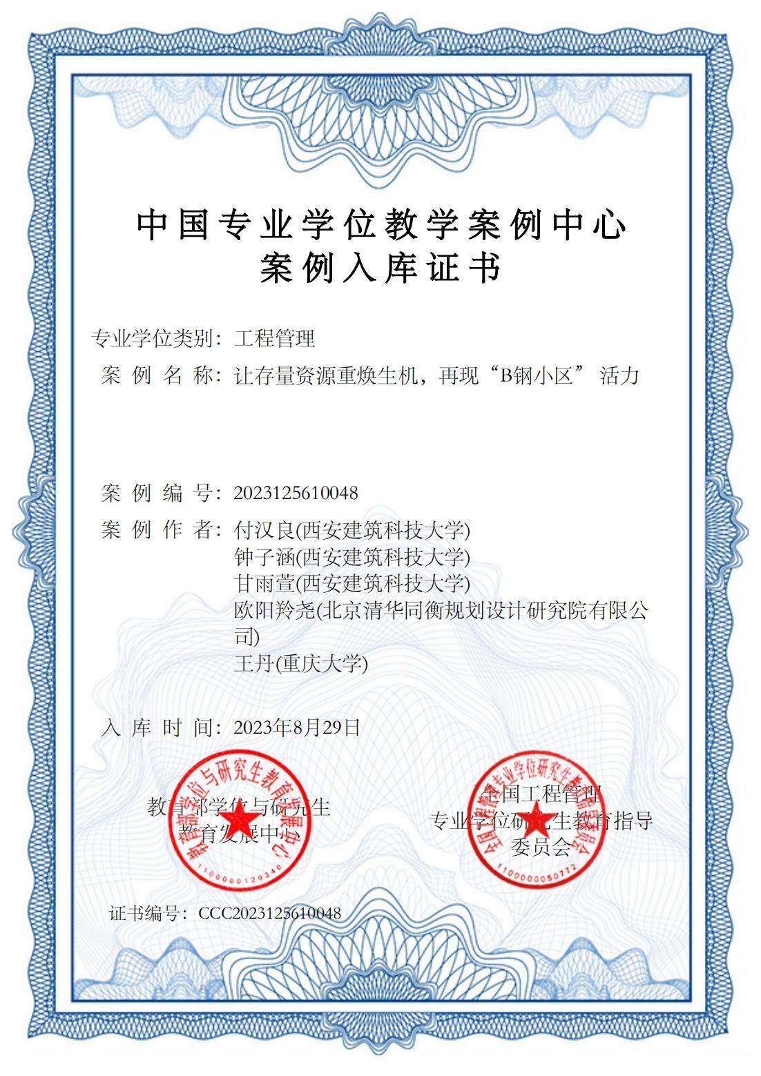 我院付汉良老师团队与北京清华同衡规划设计研究院有限公司合作,根据大型老旧小区城市更新真实项目开发的教学案例“让存量资源重焕生机,再现“B钢小区”活力”入选中国专业学位案例中心MEM案例库。